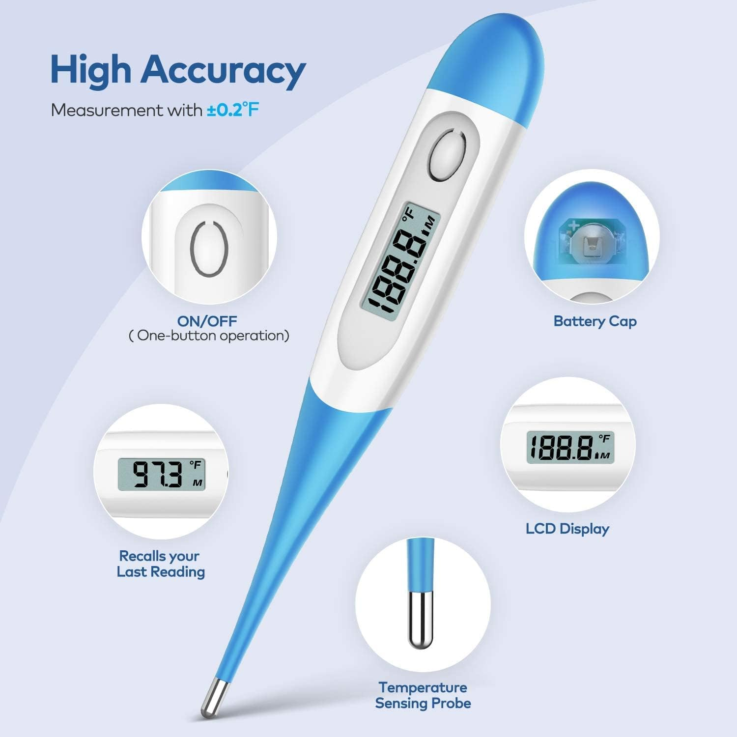 Boncare Thermometer for Adults with 10 Seconds Fast Reading, Digital Oral Thermometer for Fever (Light Blue)