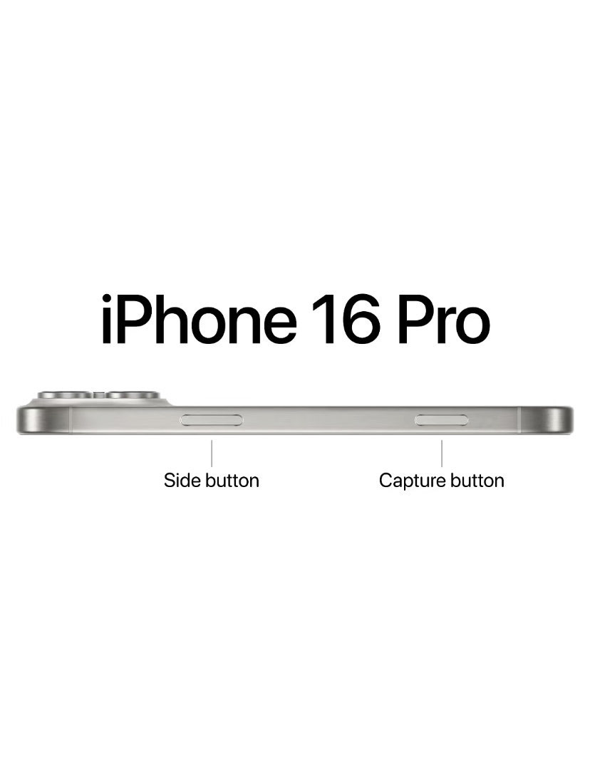6.1inch Super Retina XDR display. ProMotion technology. Always-On display. Titanium with textured matte glass back. Action button